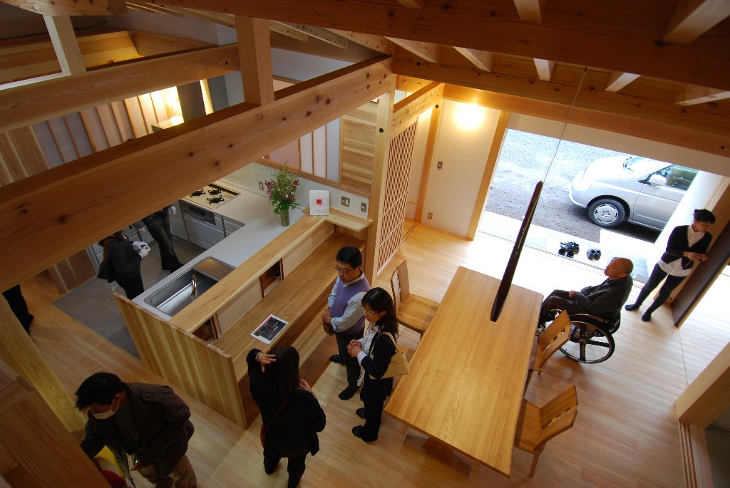 建物が完成した2012年の11月には完成見学会を行ない、多くの方にお越し頂きました。写真には名古屋の阿部建設・阿部社長の姿も見えます。「阿部社長も見に来てくださったのだな。」と嬉しい気持ちで思い出しています。