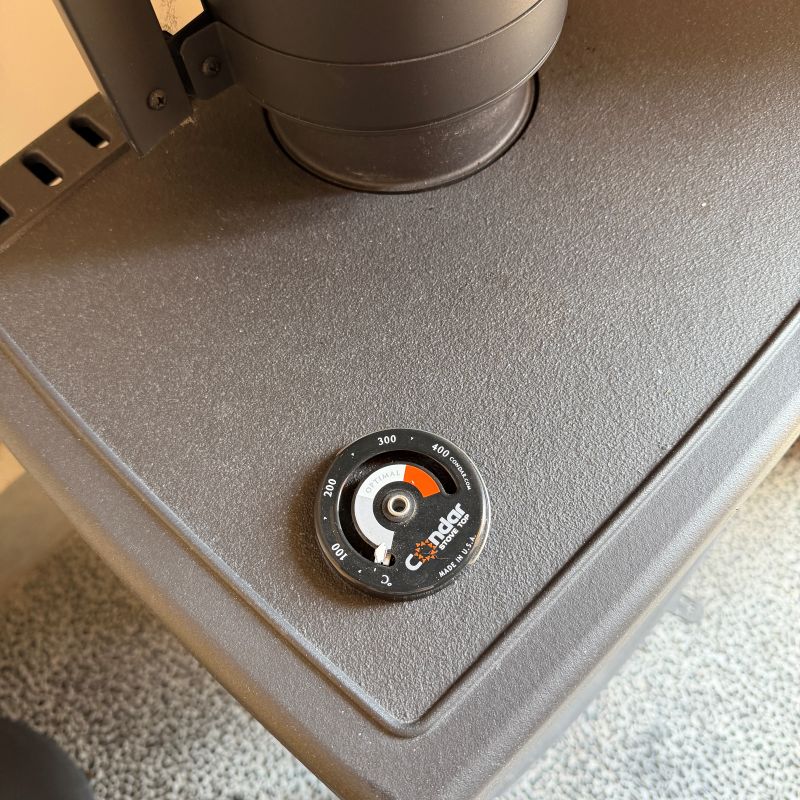 薪ストーブの天板温度は丸型の温度計で確認します。この温度から炉内の燃焼状態を判断します