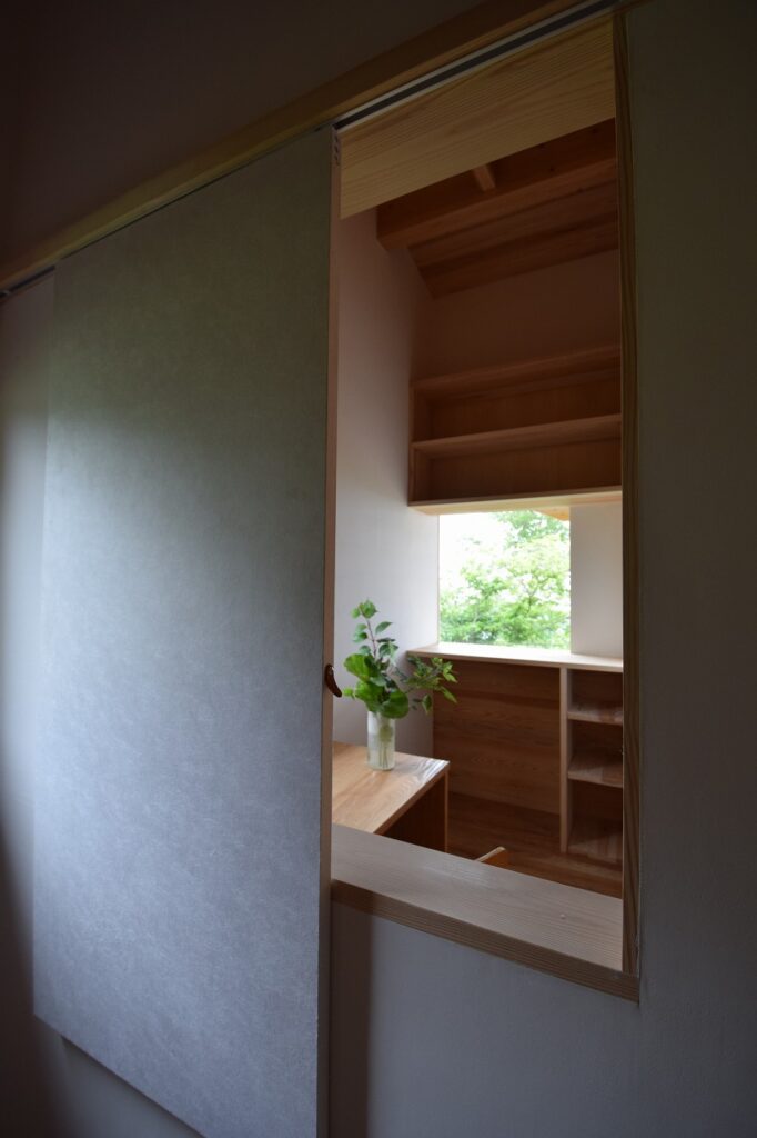 寝室には 書斎につながる「室内窓」があります。戸襖を引けば、寝室から書斎を介して外の景色が見えます。