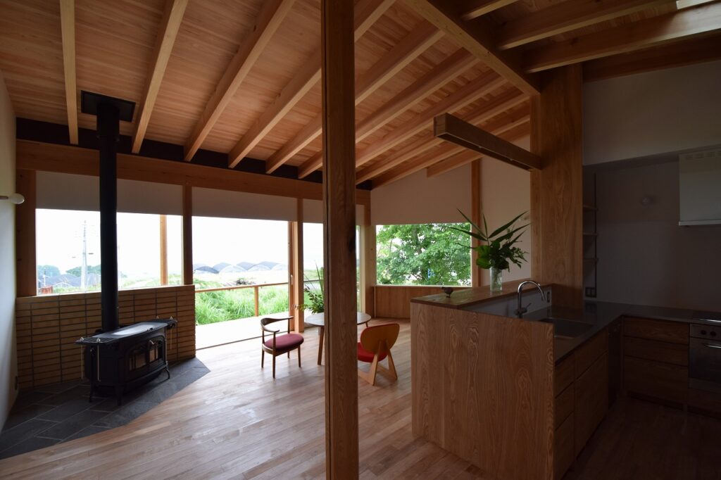 景色を家の中に取り込むようにと窓の取り方を工夫しました。寒い地域ですが、しっかり断熱をしたうえで薪ストーブを使って、またこの冬も楽しんで住まわれていることと思います。