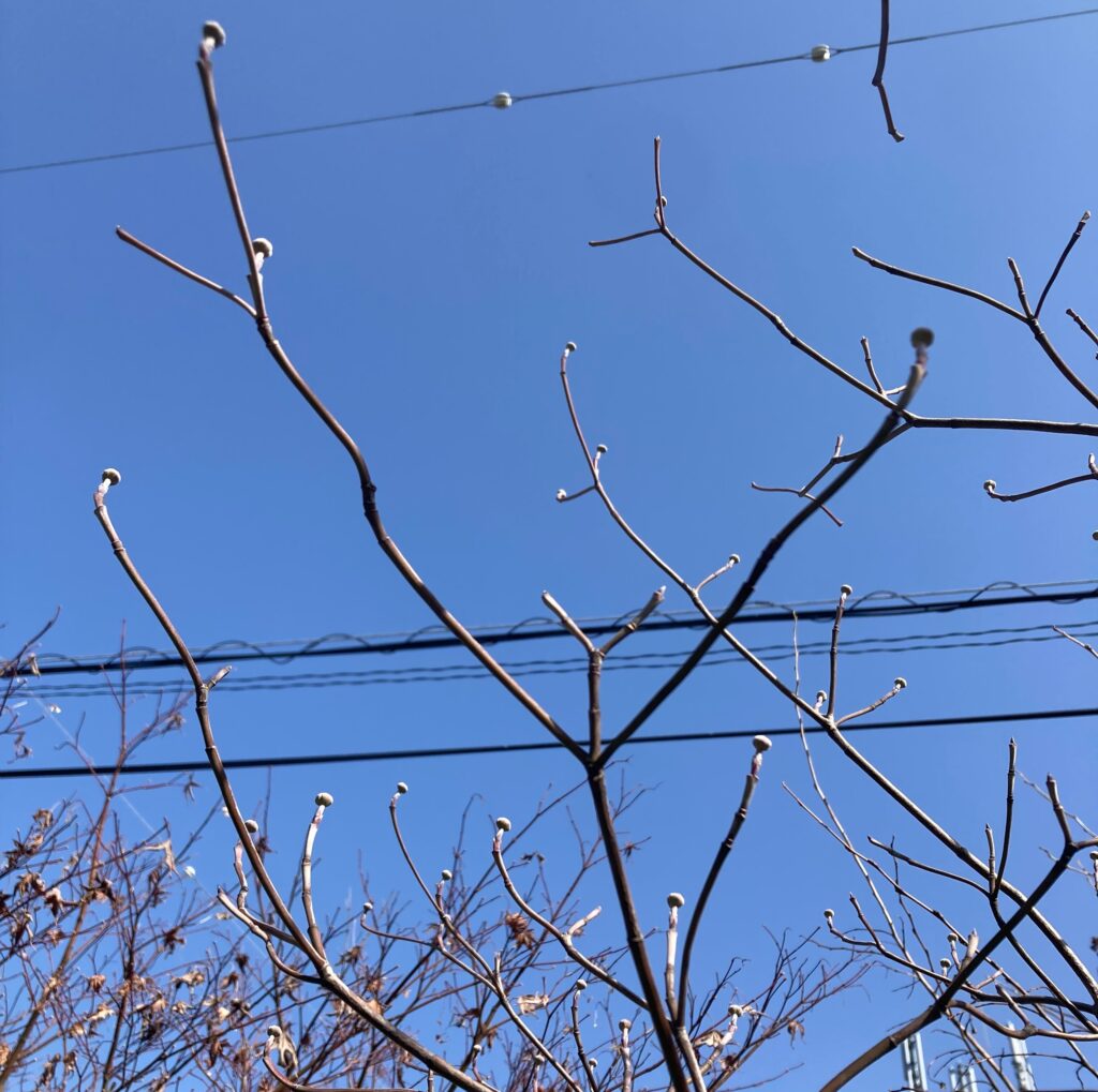 桜のあとに愉しませてくれるハナミズキには、丸いつぼみができてきました。