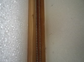 窓枠に角材を紐打ちし、発泡スチロールを固定しています。