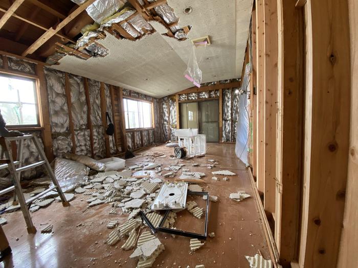 解体途中で、小屋裏にハチの巣を発見したりしながら、