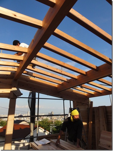 先週建て方を終えた現場は屋根の仕舞いもほぼ終っています。
